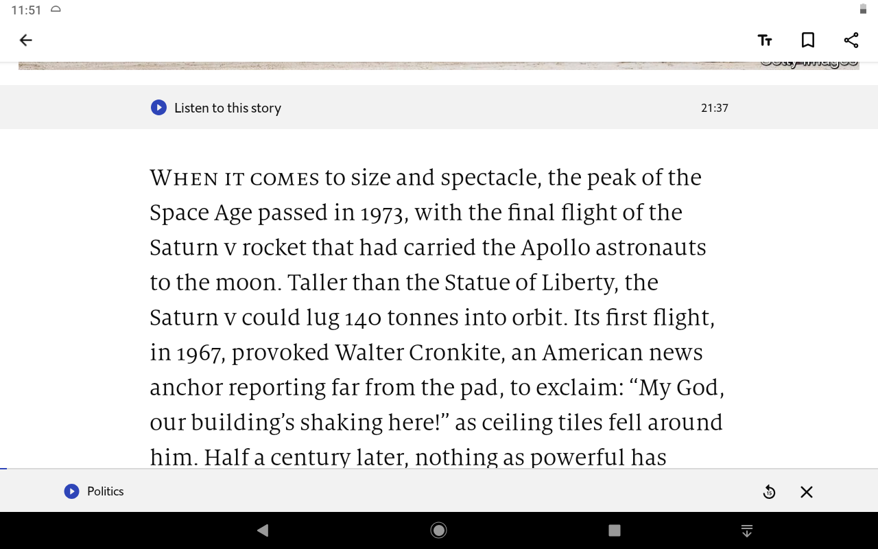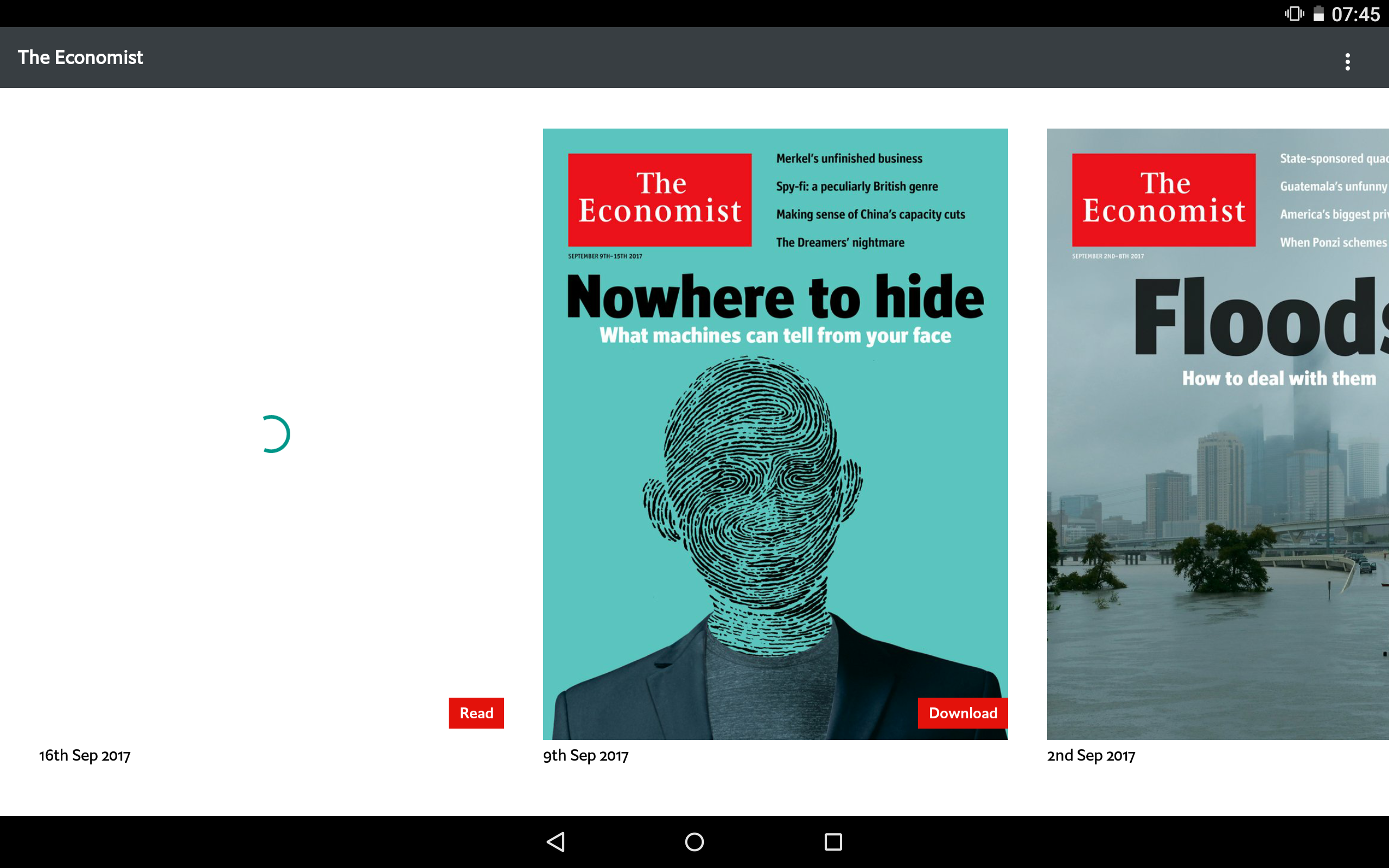 In July-2017 the Economist "upgraded" their Android app from 2.1.10 (initially to 2.3.x now on 2.9.x).